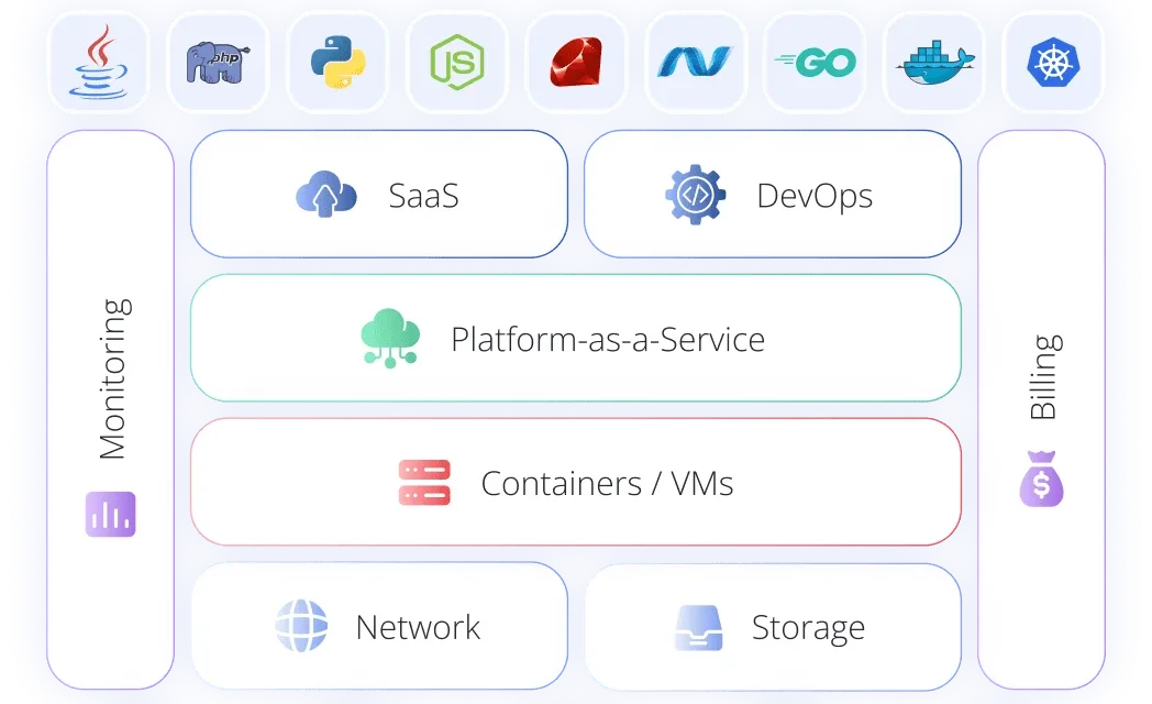 Forget the infrastructure and spotlight on the basics. Whatever the infrastructure (redundancy, IP, SSL, load adjusting, and so on.) and technologies (PHP, Node.js, Java, Docker, Ruby, and so on.) that you need, RealCloud enables you to deploy, change, exchange and clone environment of your choice within a moment.
